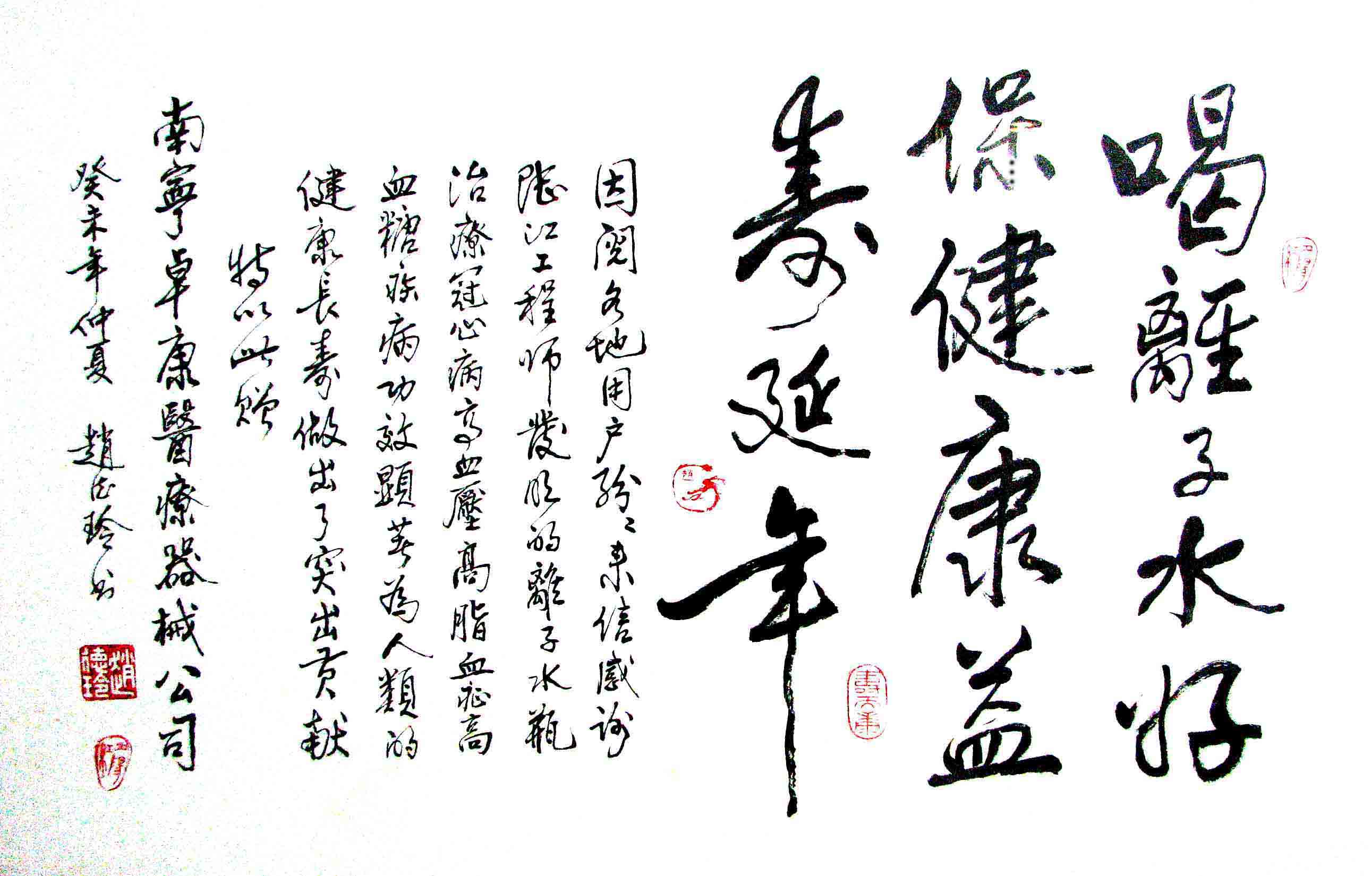 -----我是從事建筑的高工,本來沒有資格去攻克醫(yī)學(xué)難題,卻為了自身健康才扣響醫(yī)學(xué)的大門。由于我1990年患高血壓,因怕中風(fēng)才研究發(fā)明了離子水瓶,我把水處理成微小分子團(tuán)水,飲用后治愈了高血壓。便于1993年底送到三家省級醫(yī)院做臨床試用4個(gè)月。經(jīng)北京和廣西醫(yī)學(xué)專家鑒定:"降脂降壓效果好"," 能擴(kuò)大心腦動(dòng)脈流量,改善心腦電圖以及微循環(huán)","對治療心腦動(dòng)脈粥樣硬化、高血壓、高血脂有良好的醫(yī)療保健作用。""產(chǎn)品的技術(shù)性能和療效達(dá)到了同類產(chǎn)品的國內(nèi)領(lǐng)先水平,經(jīng)廣西醫(yī)學(xué)科學(xué)情報(bào)研究所檢索,未見國外有類似報(bào)道。"中國醫(yī)學(xué)科學(xué)院張正國教授從美國國立醫(yī)學(xué)圖書館數(shù)據(jù)庫存Medline檢索英俄文資料,均未見類似報(bào)告。2000年上市后,我為了對消費(fèi)者負(fù)責(zé)而繼續(xù)觀察研究,一直通過《信譽(yù)卡》和《質(zhì)量跟蹤調(diào)查書》向患者承諾療效,請用戶使用6個(gè)月后反饋效果。和脂壓患者飲用2至5個(gè)月內(nèi),消除癥狀,停服藥物,血壓正常;冠心病患者飲用3~5個(gè)月逐漸減輕至消除心絞痛、房顫等癥狀,不再服藥,飲用1年左右心電圖正常,經(jīng)冠脈造影掃描無明顯狹窄,表明冠心病痊愈。大量患者還反映許多衰弱器官被修復(fù),讓前列腺增生、慢性咽喉炎、慢性氣管炎、支氣管炎、慢性胃炎、腸炎和膽囊炎等不藥而愈;2型糖尿病患者是因?yàn)橐葝u衰弱致病,飲用該水半年至一年,逐漸減藥至停藥,血糖尿糖正常,真正治愈2型糖尿病。中風(fēng)后遺癥患者飲用六七個(gè)月,可逐漸減輕至消除肢體和語言障礙,表明飲用該水能讓壽命很長的神經(jīng)元細(xì)胞逐漸修復(fù),奇跡般地恢復(fù)肢體和語言功能。飲用后還使胸腺和脾臟兩個(gè)重要的免疫器官被修復(fù)和增強(qiáng),產(chǎn)生免疫細(xì)胞多,提高了免疫力,使人不生病或少生病。自此, 飲用微小分子團(tuán)水創(chuàng)造了攻克冠心病、高(低)血壓和糖尿病三大醫(yī)學(xué)難題的奇跡。人們對此感到不可思議,但實(shí)踐是檢驗(yàn)真理的唯一標(biāo)準(zhǔn)。